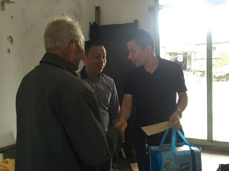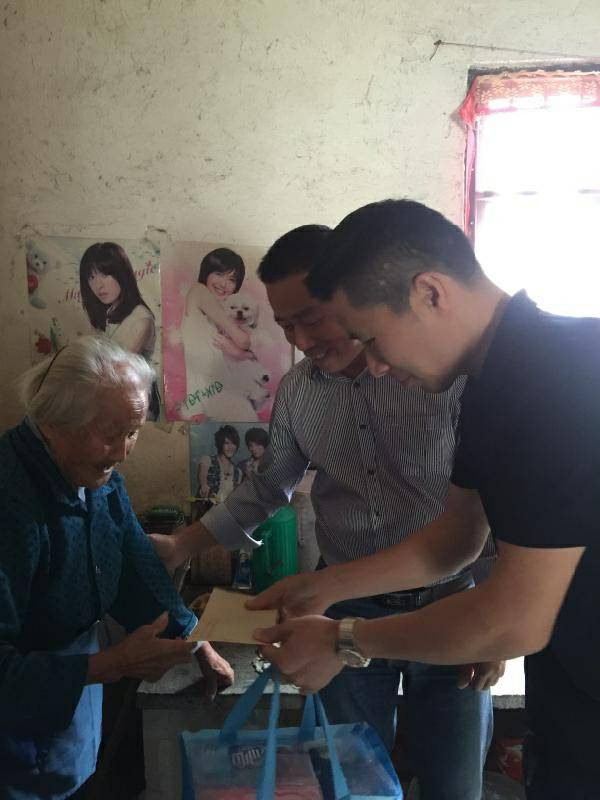 重阳节浙江天津郑毅多元文化传播有限公司纸业陈少林董事长、生产部经理邵忠华等企业高层前往结对村看望困难老人